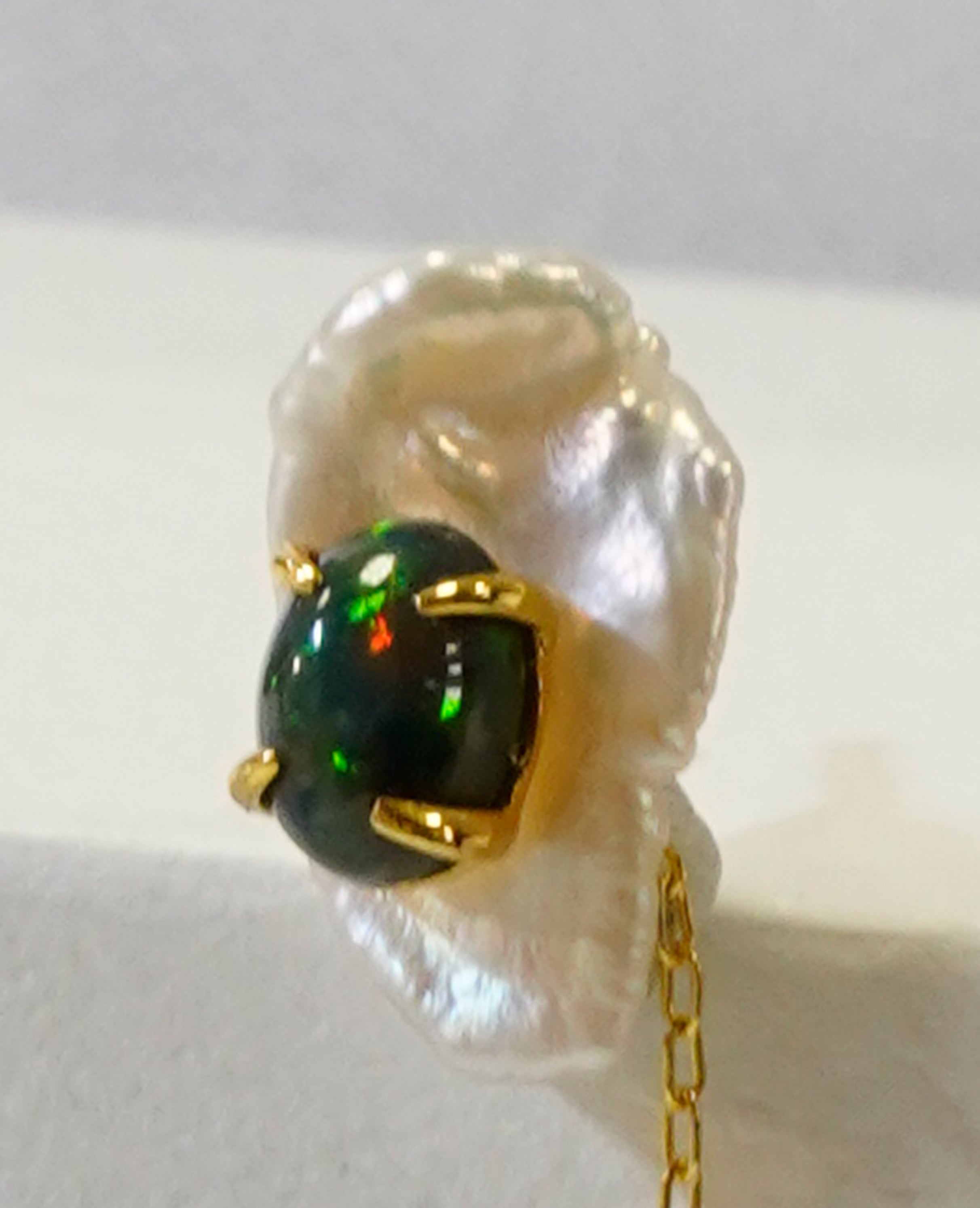 パールとオパール、ブラック色の遊色が美しいオパールです。