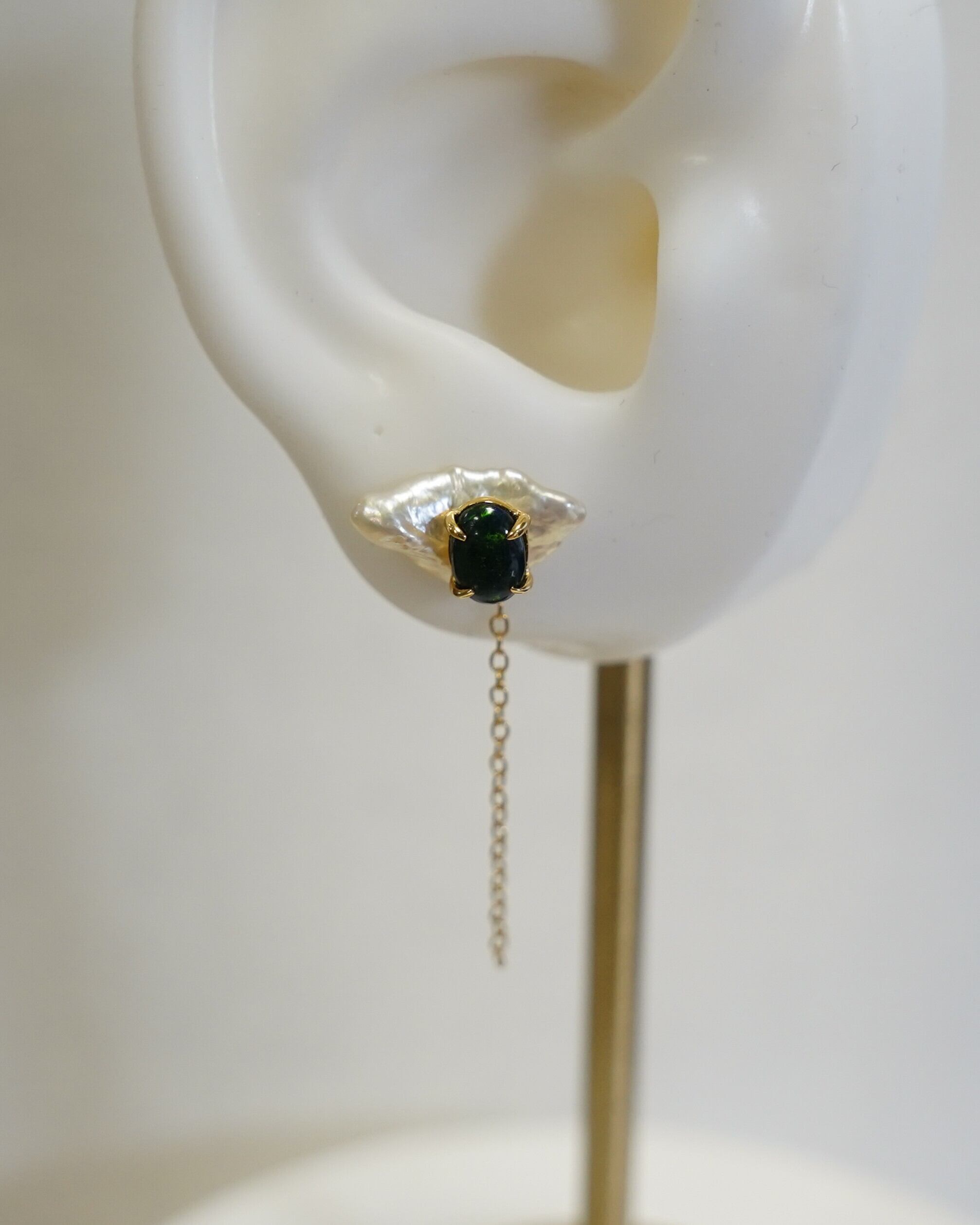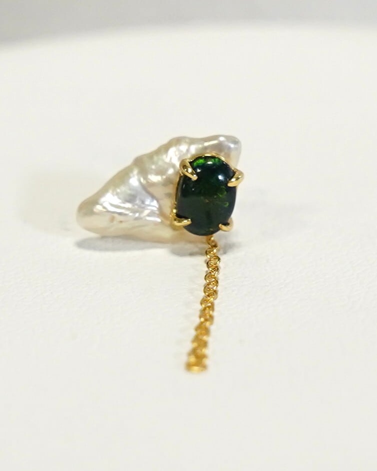 淡水パールとオパール、ブラック色の遊色が美しいオパールです。