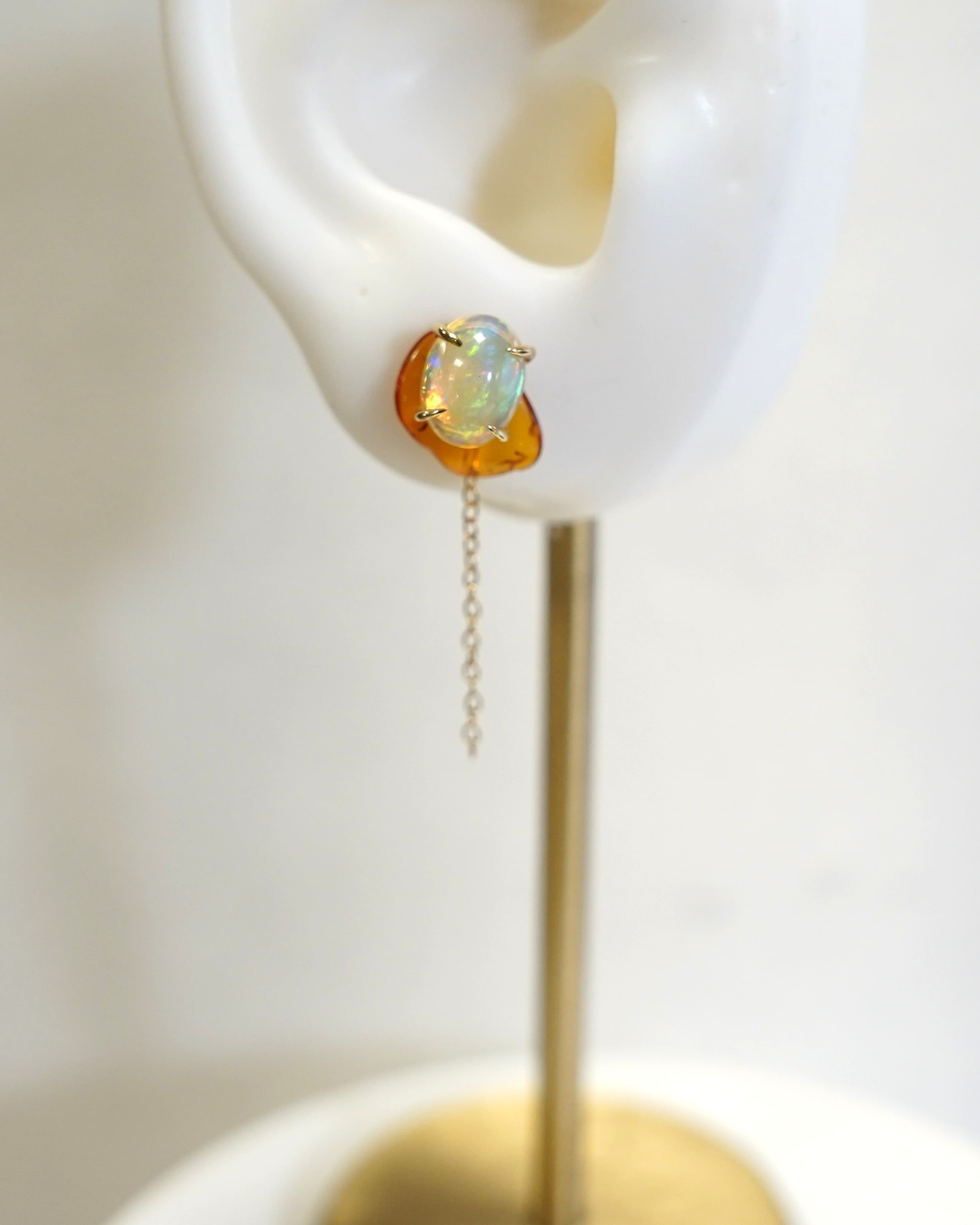 色鮮やかなオパールと琥珀が美しい組み合わせです。