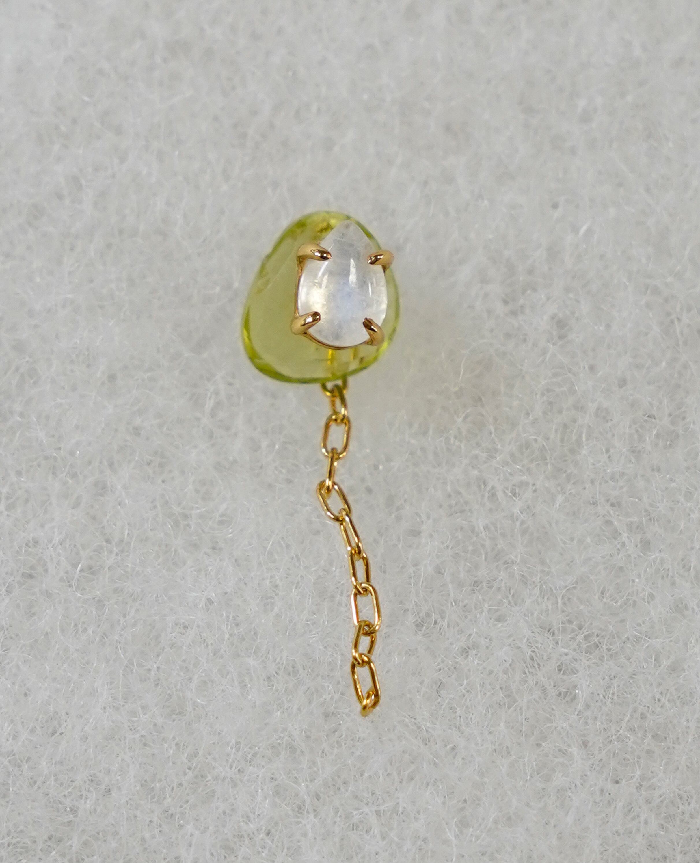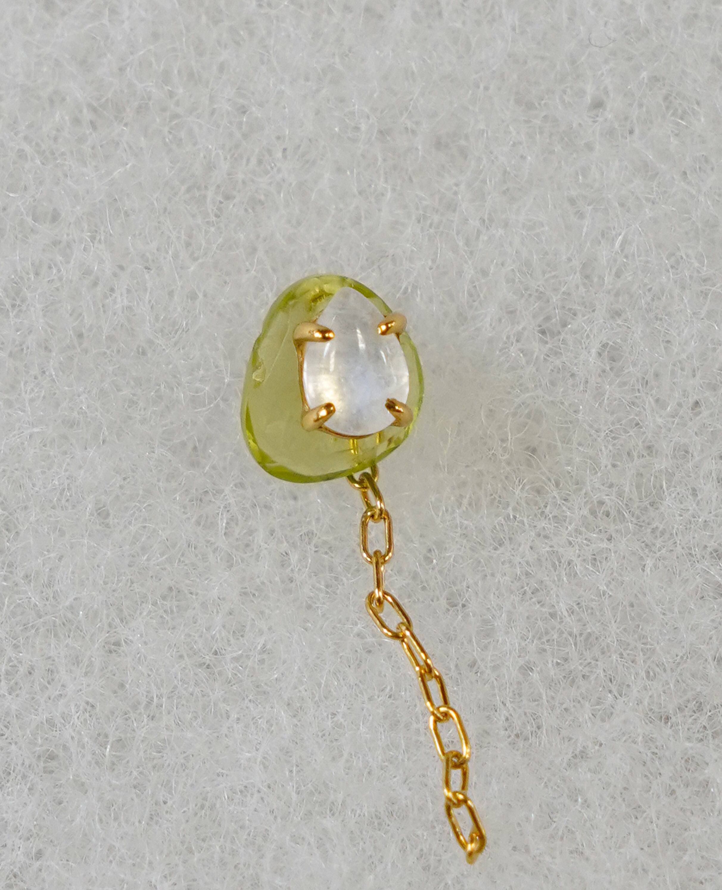 ペリドットと石留めのムーンストーンの組み合わせです。