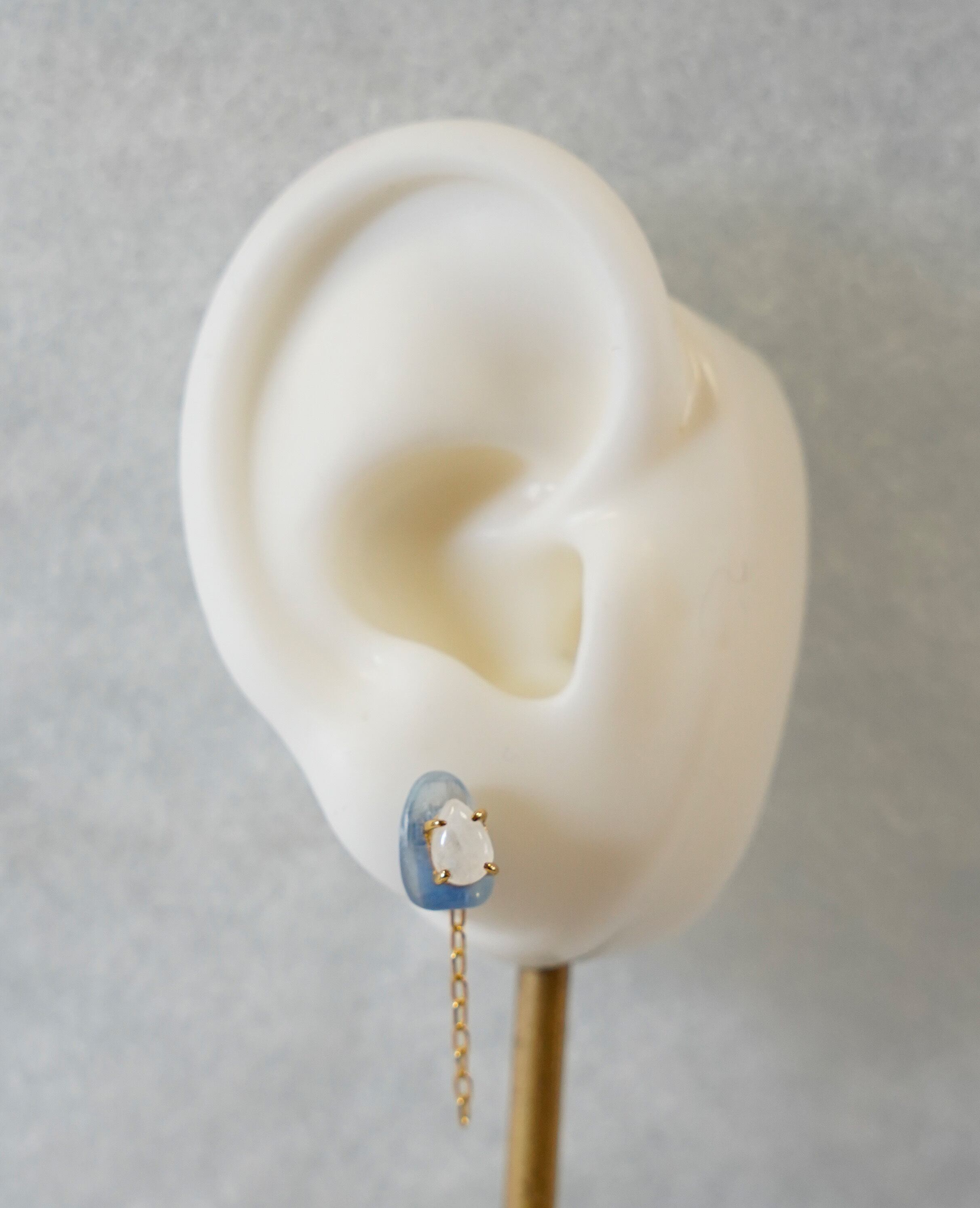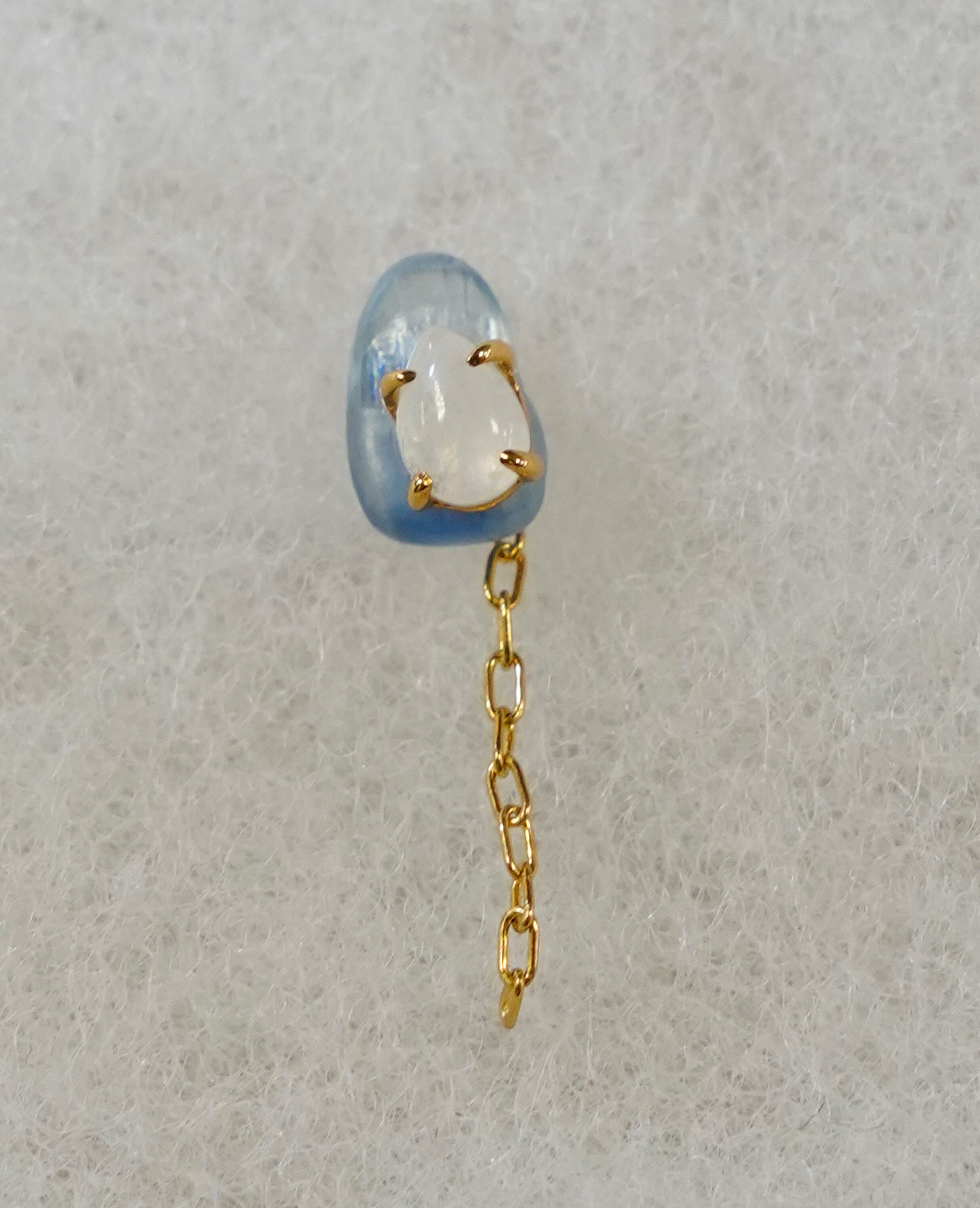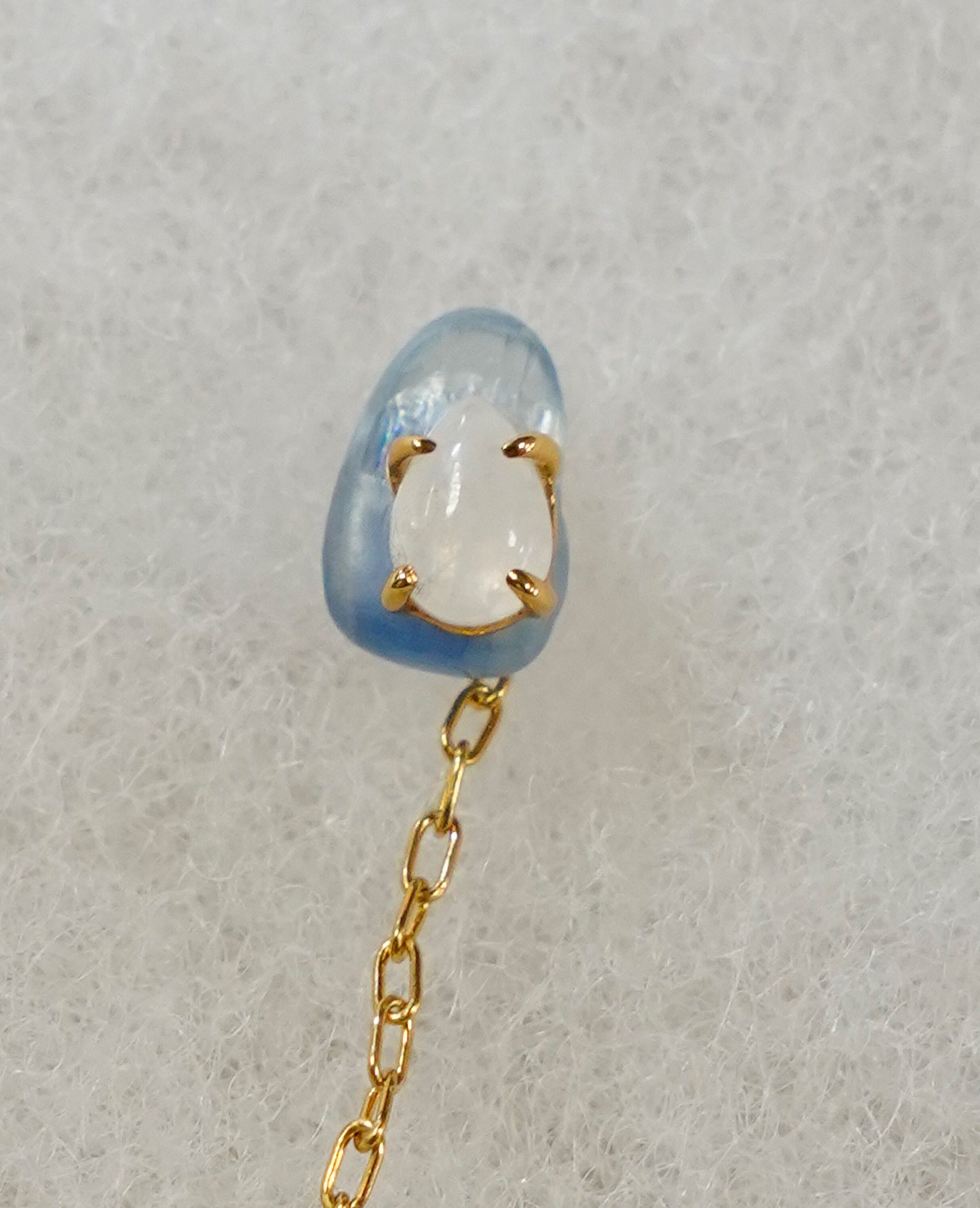 カイヤナイトと石留めのムーンストーンの組み合わせです。