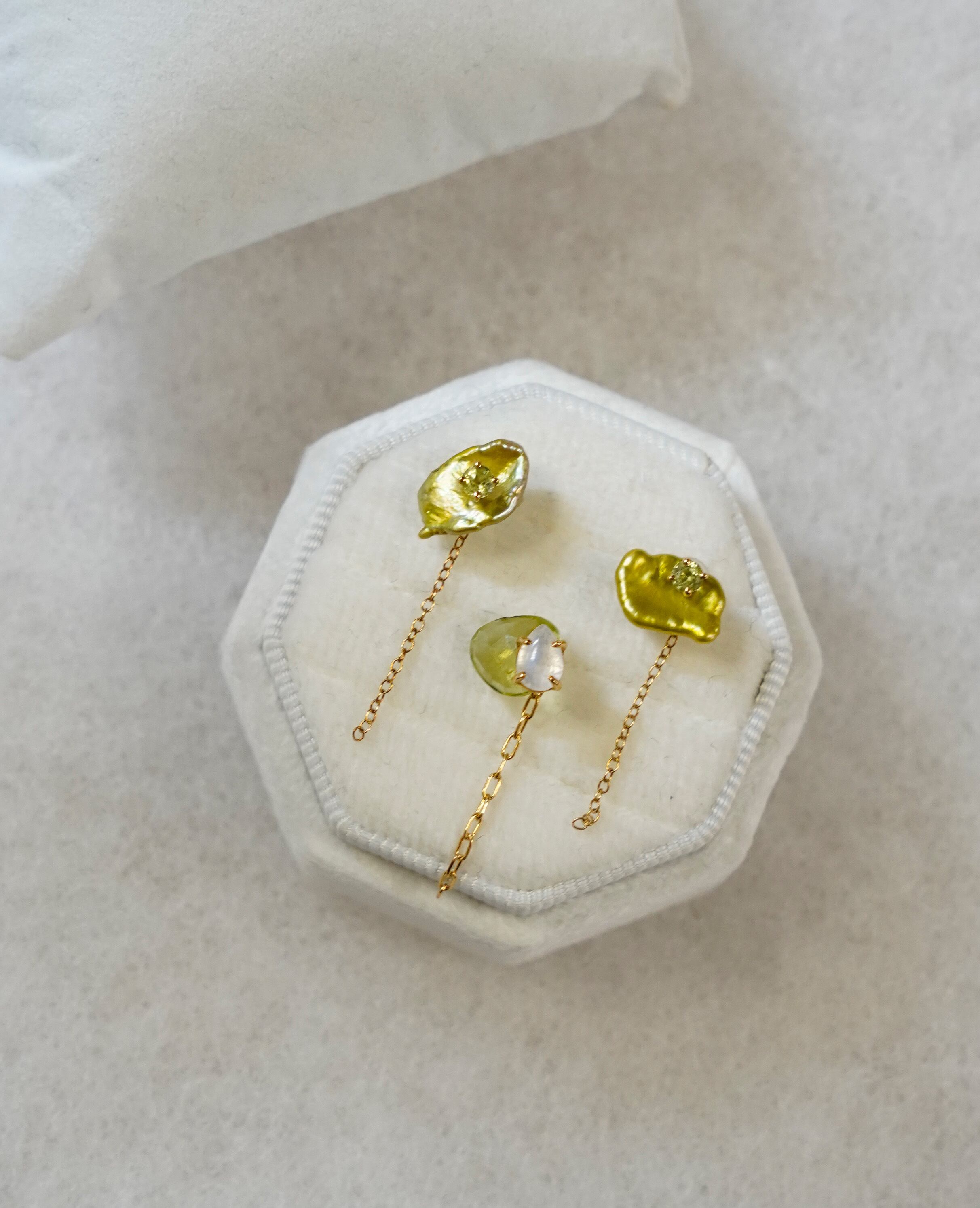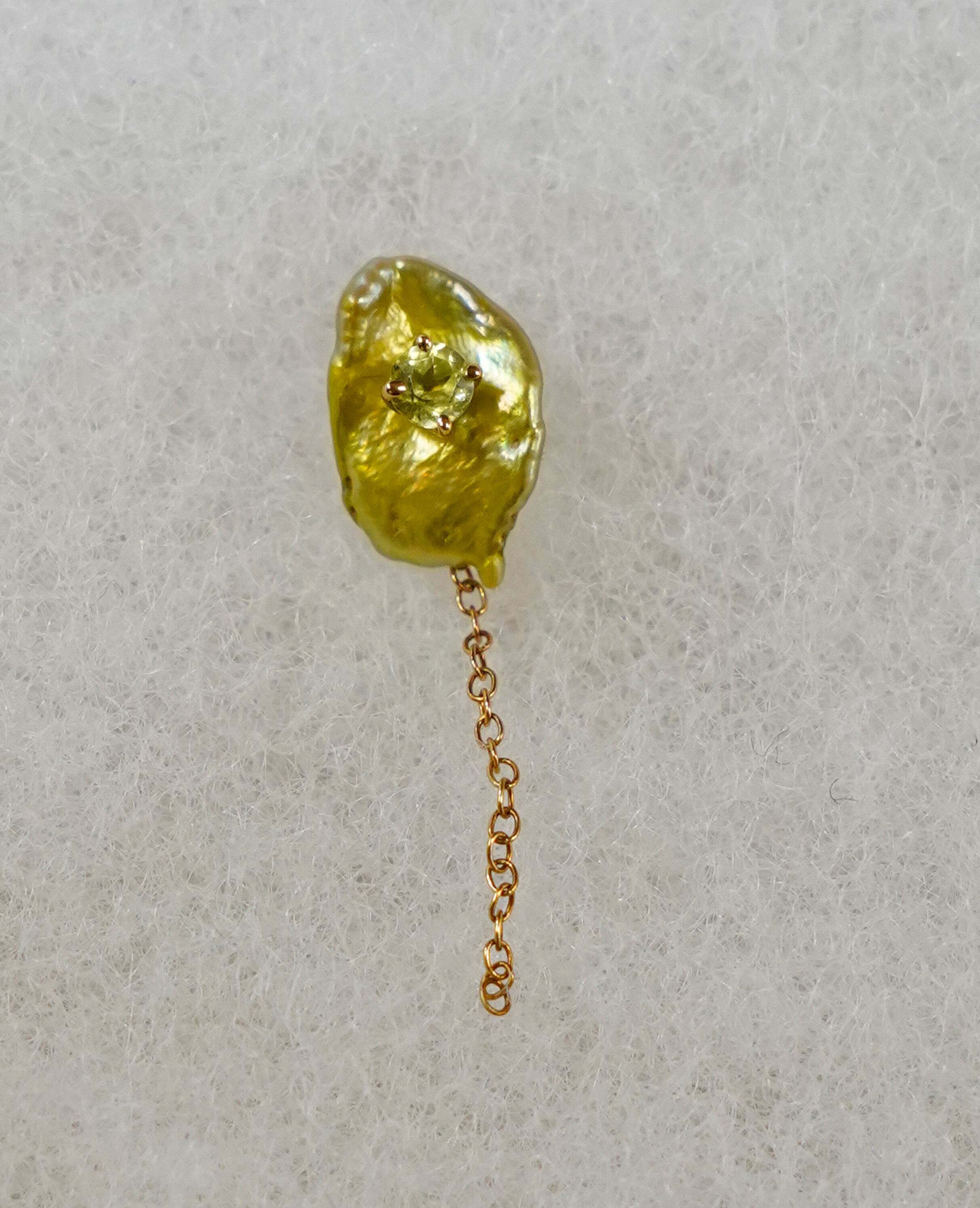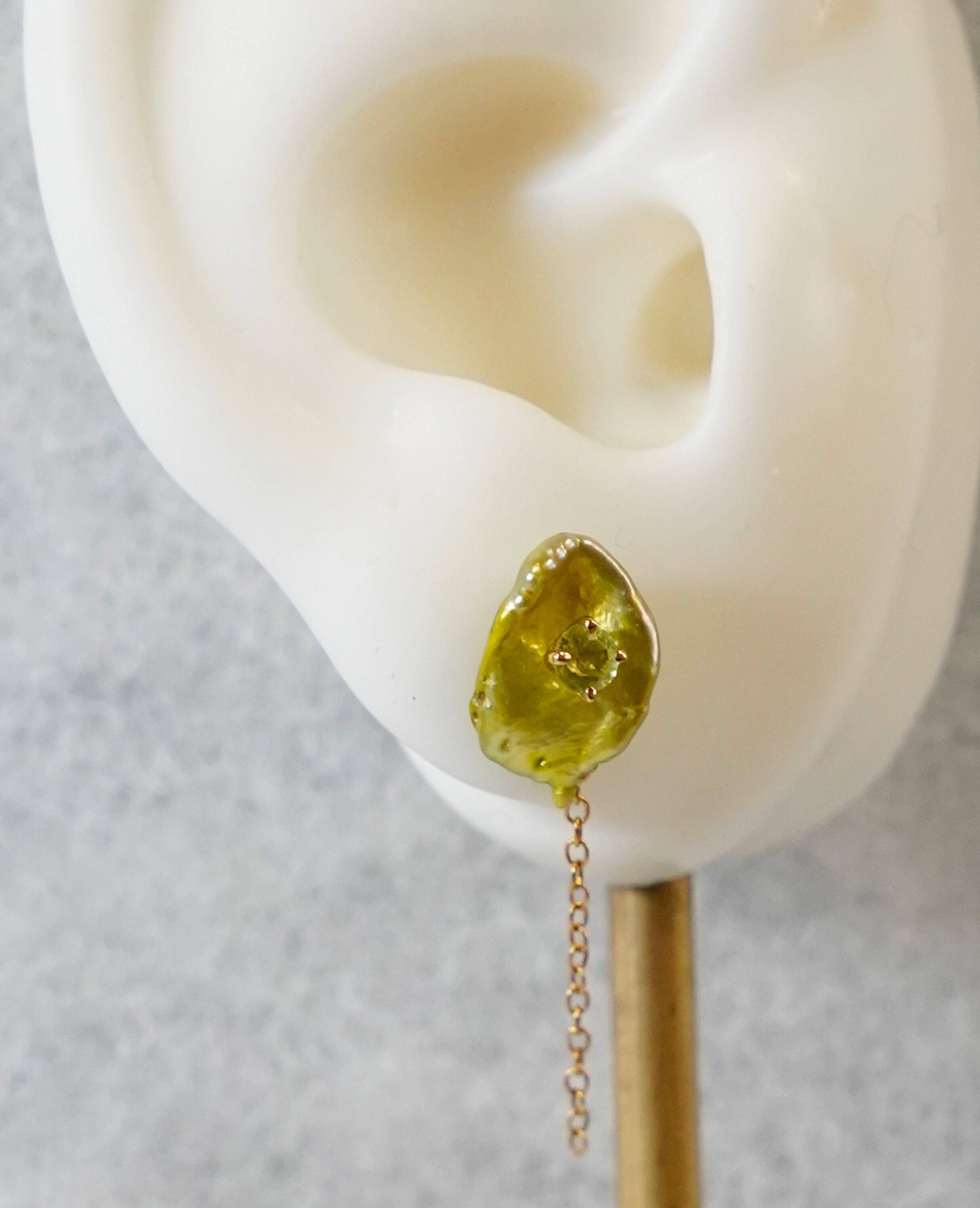 石留したペリドットとパールの組合せ。