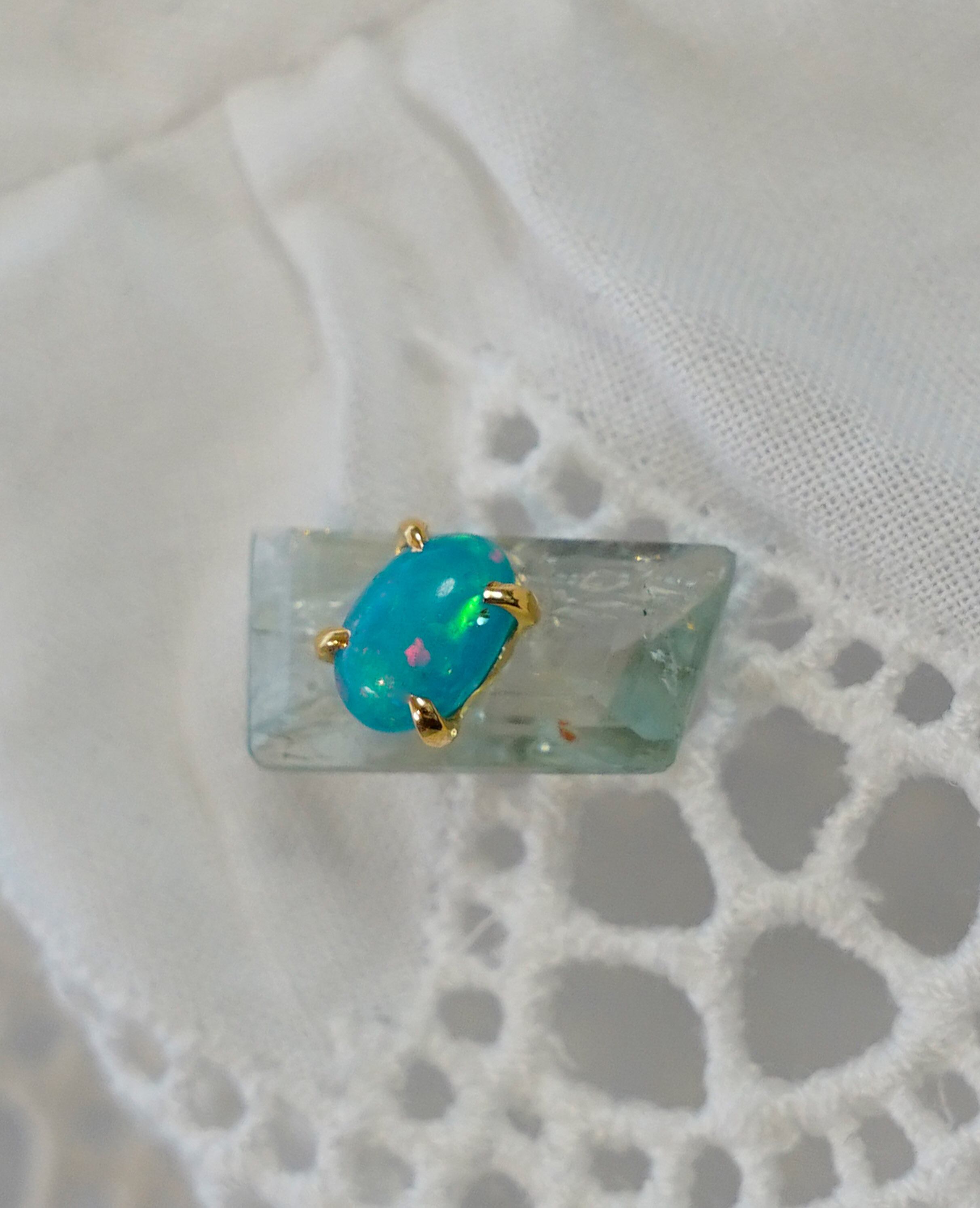 石留めしたとオパールとフェルドスパーの組み合わせ。