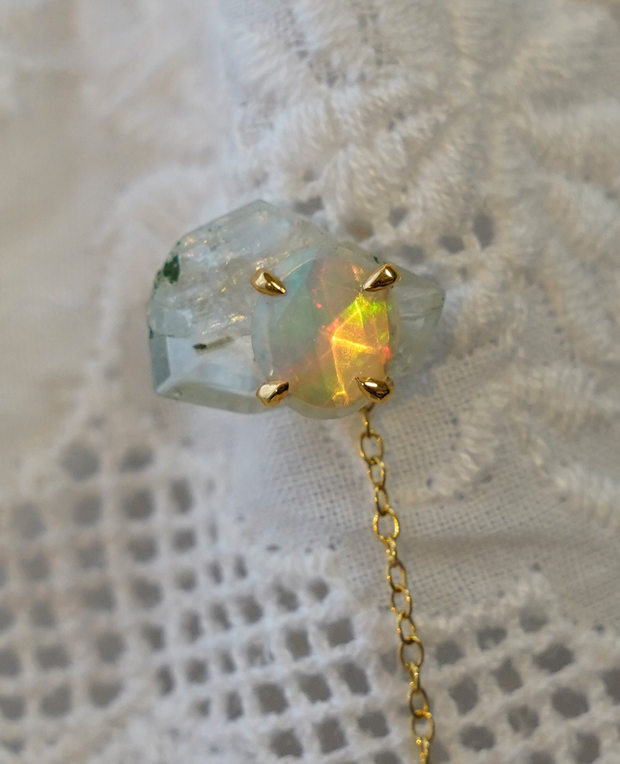 石留めしたとオパールとフェルドスパーの組み合わせ。