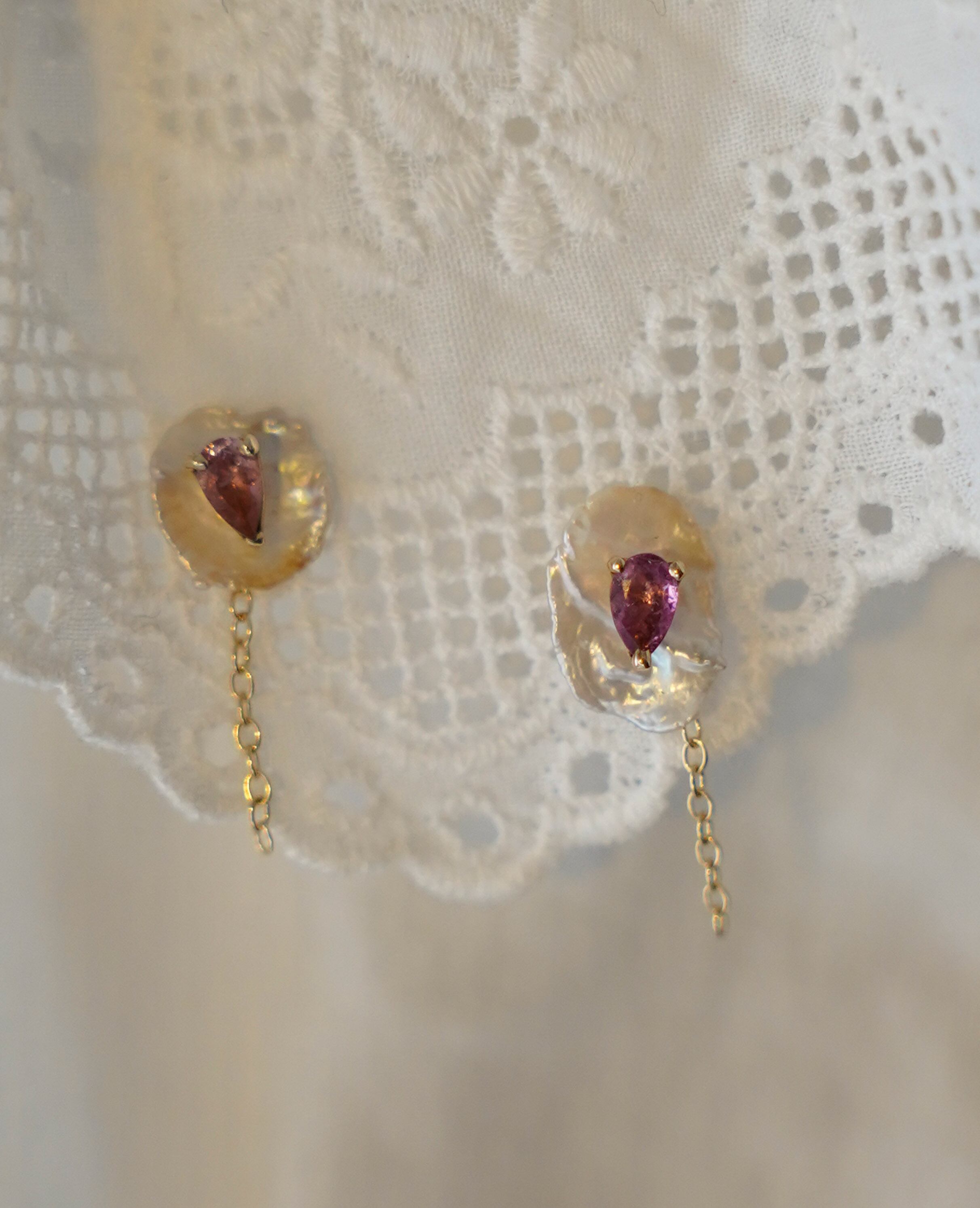 遊色が美しい淡水パールとピンクトルマリンの組み合わせ。