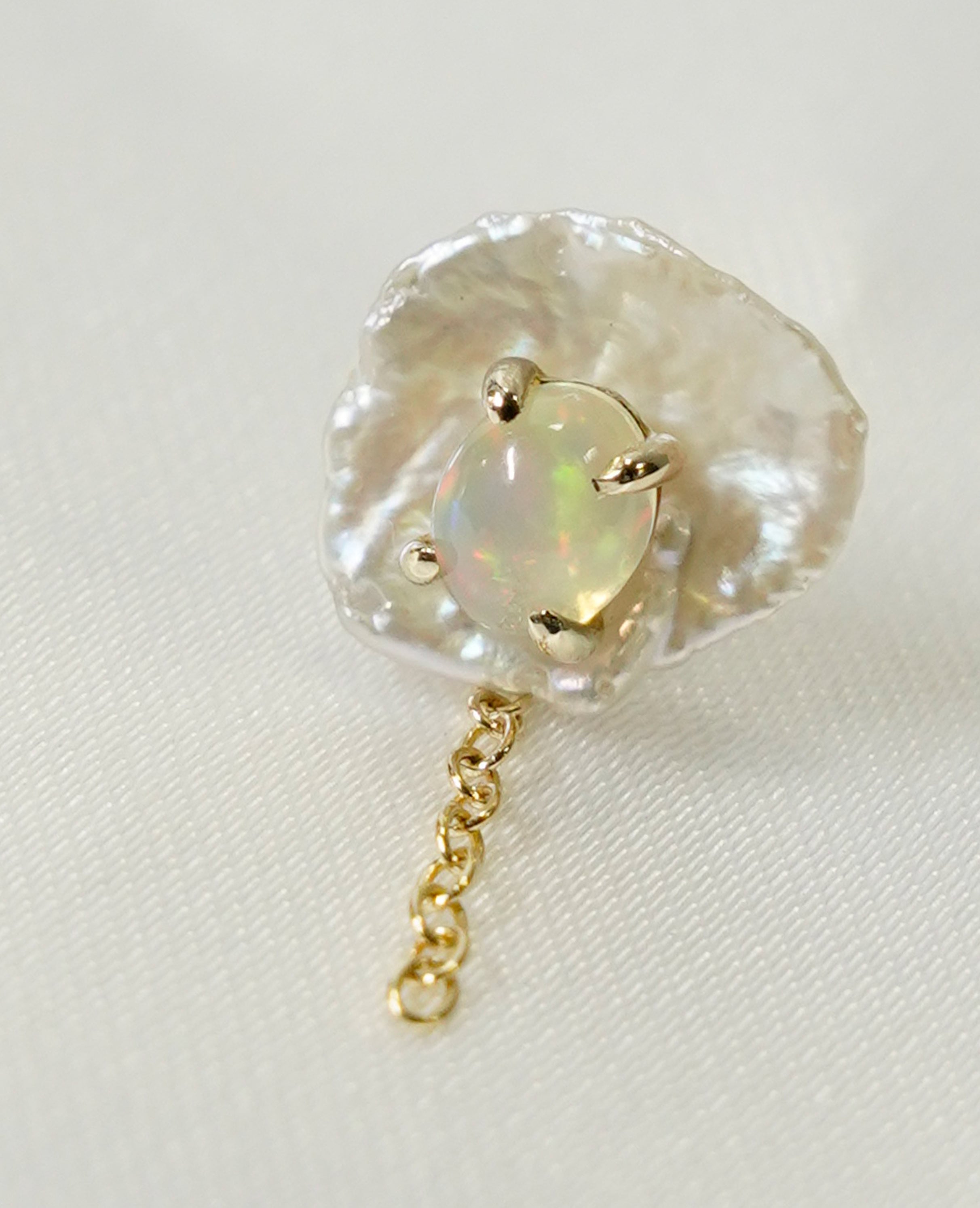遊色が美しい淡水パールとオパールの組み合わせ。